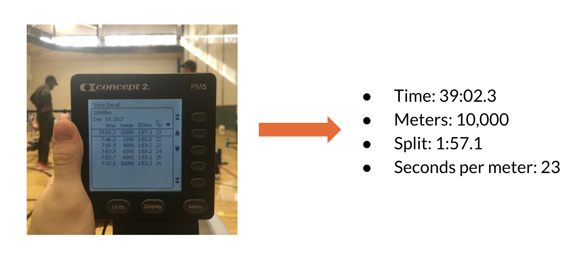 Being on the crew team at school filled my phone up with photos of an ergometer screen as each week we